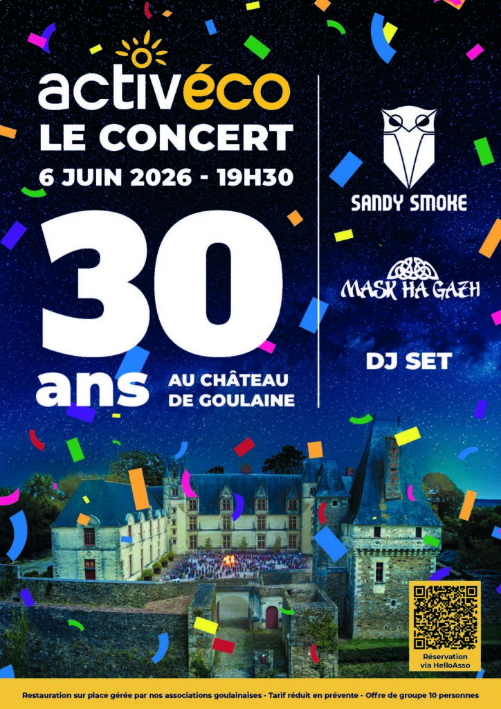 Retrouvez-nous au Château de Goulaine le 6 juin pour célébrer les 30 ans d’Activ’éco. Au programme : Sandy Smock, MASK HA GAZH, un DJ set et bien d’autres surprises vous attendent pour une soirée festive dans un cadre exceptionnel. Réservez votre place dès maintenant. Tarif préférentiel pour les groupes de 10 personnes.